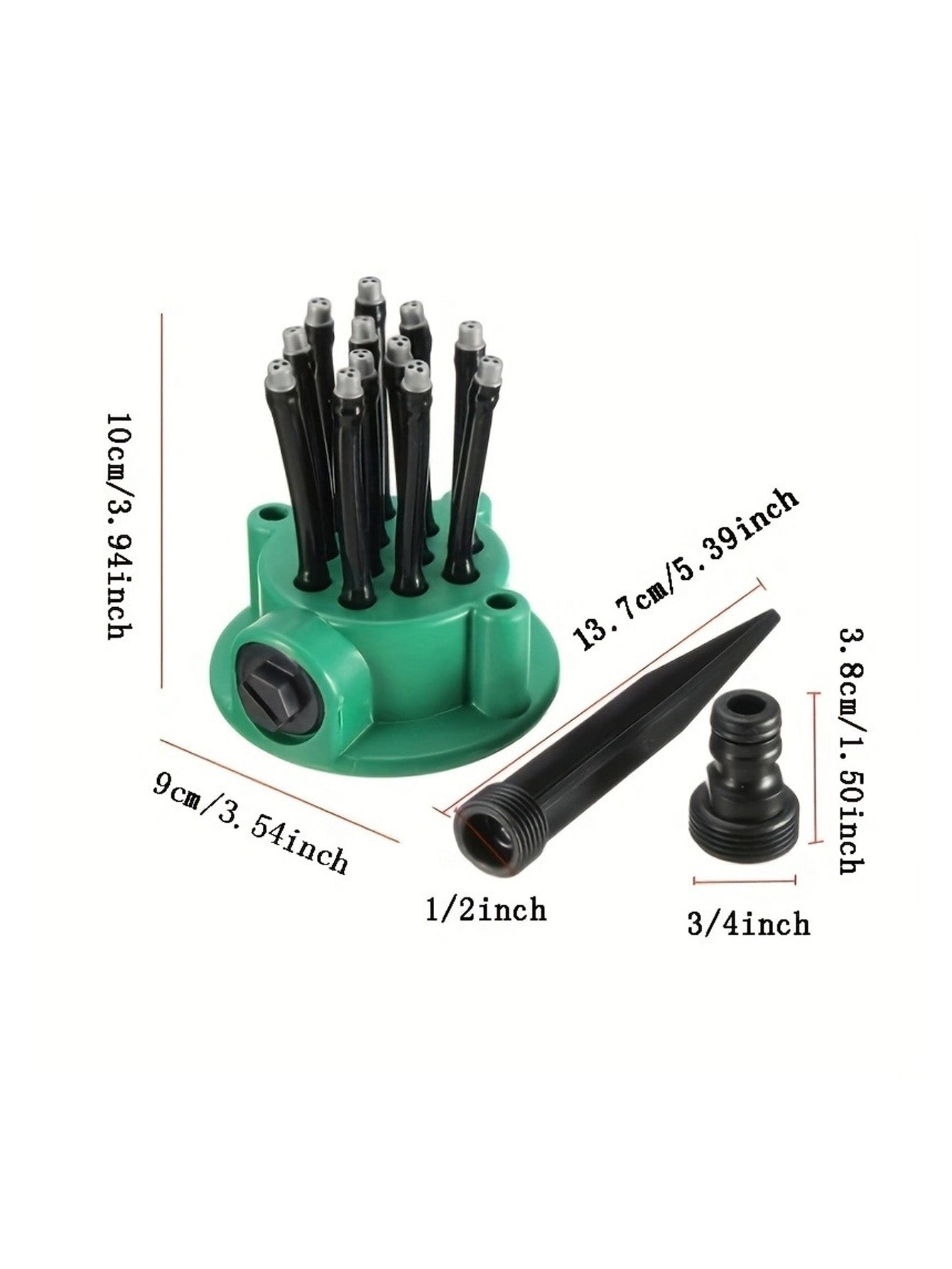 This garden sprinkler is made of high-strength ABS material, lightweight and durable (net weight 170g), compact packaging (11*10*10cm), easy to store and install. The 360-degree automatic rotation design, with multiple water outlets, achieves all-round uniform spraying, with a wide coverage range, suitable for a variety of scenes such as courtyards, flower beds, and lawns. No complicated operation is required, it can be quickly started by connecting the water pipe, saving water and being efficient, and it is an ideal assistant for gardening irrigation.