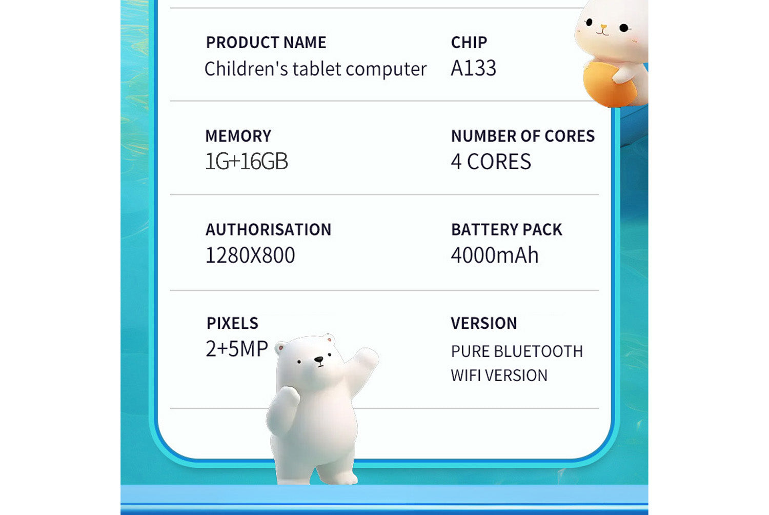 3. Smooth Experience: 1GB RAM + 16GB storage, expandable, for effortless running of learning apps and games.