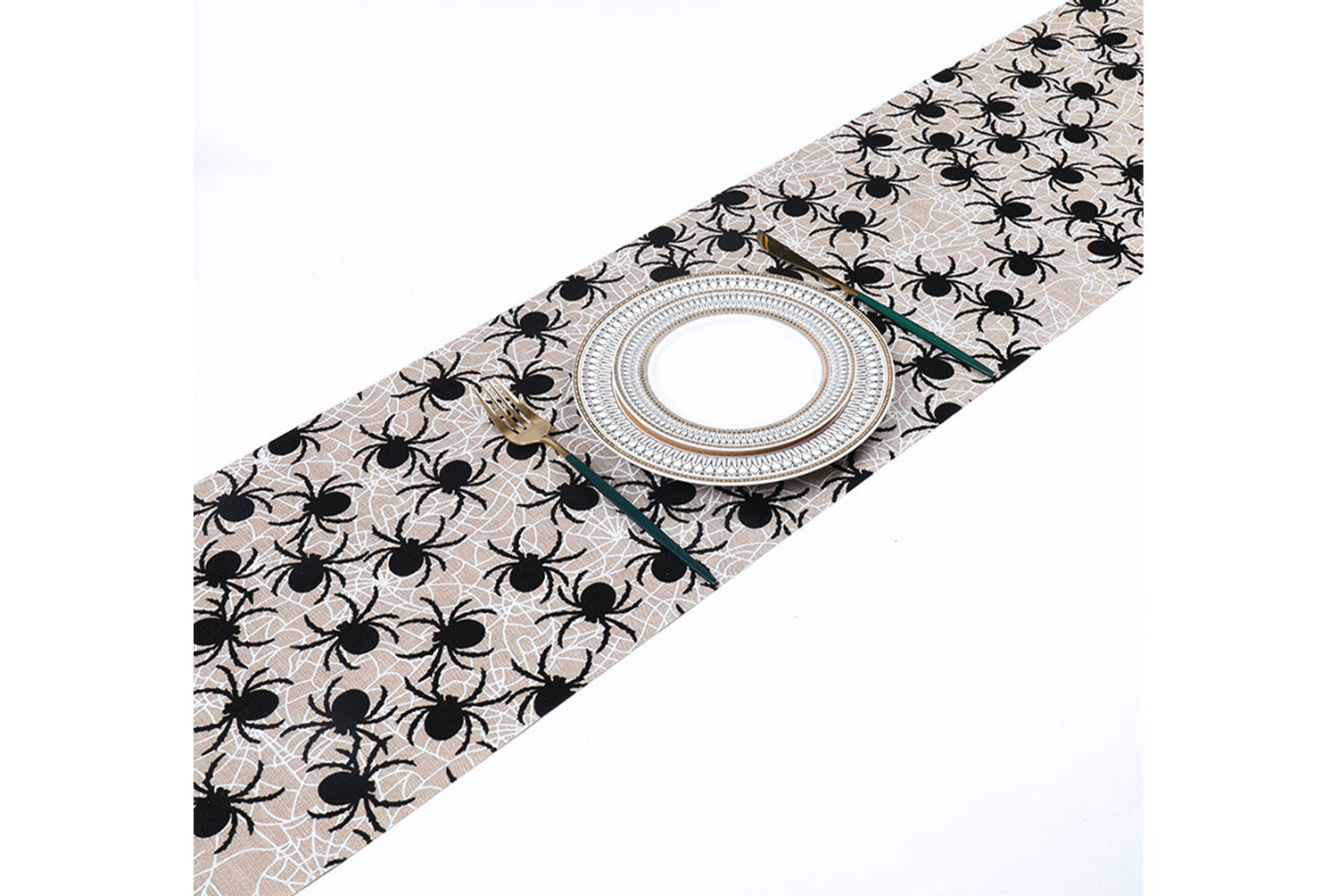 **Halloween Linen Table Runner | American Creative Flocked Print Tablecloth**