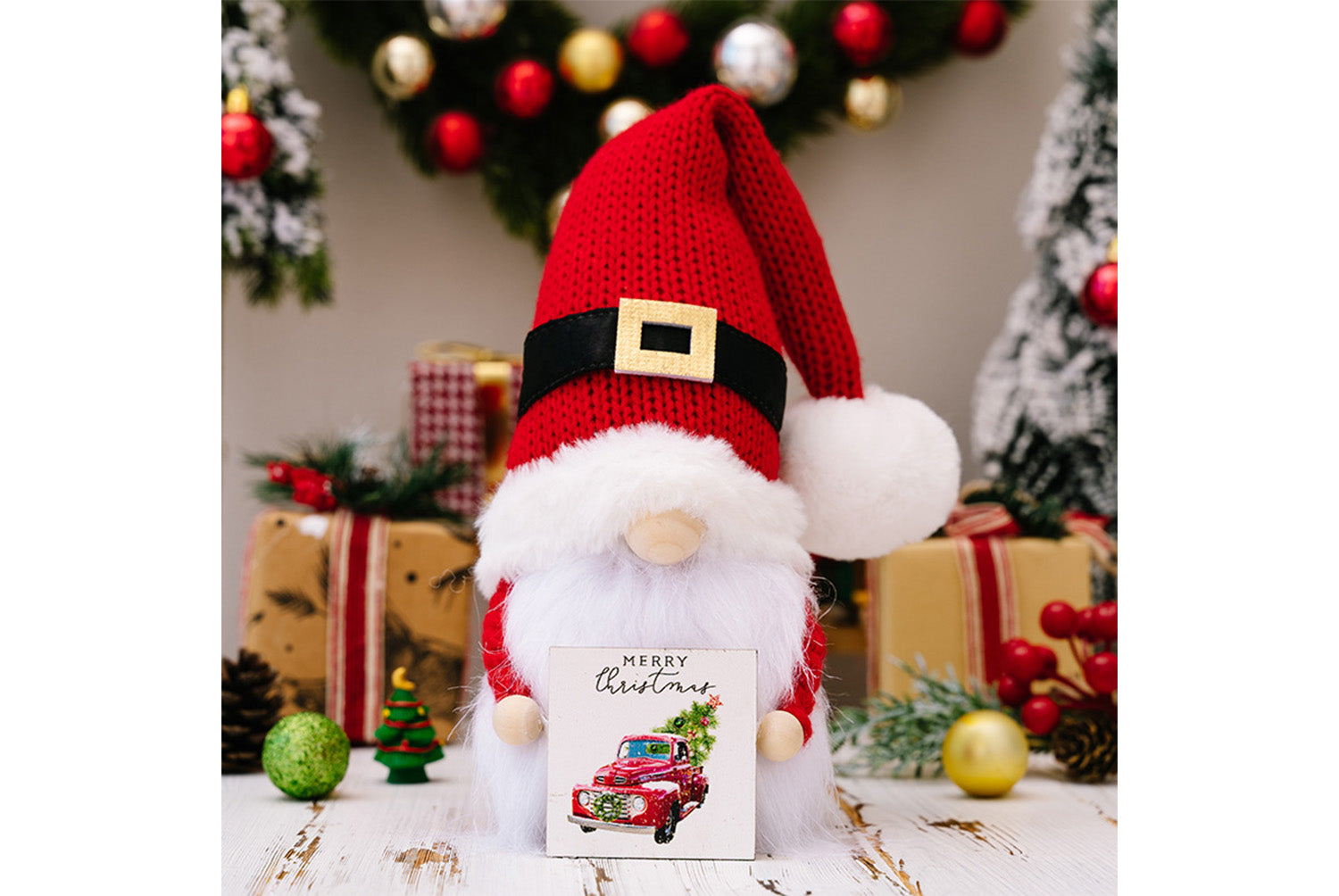 **Christmas Pom-Pom Knit Hat with Rudolph Figurine**