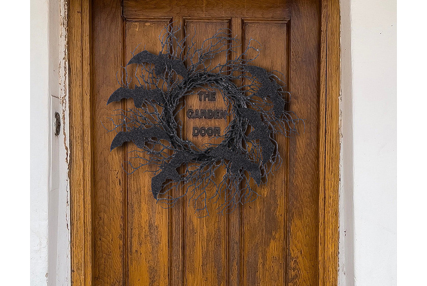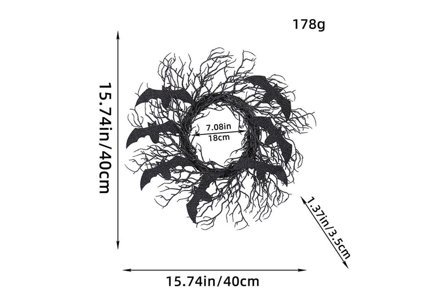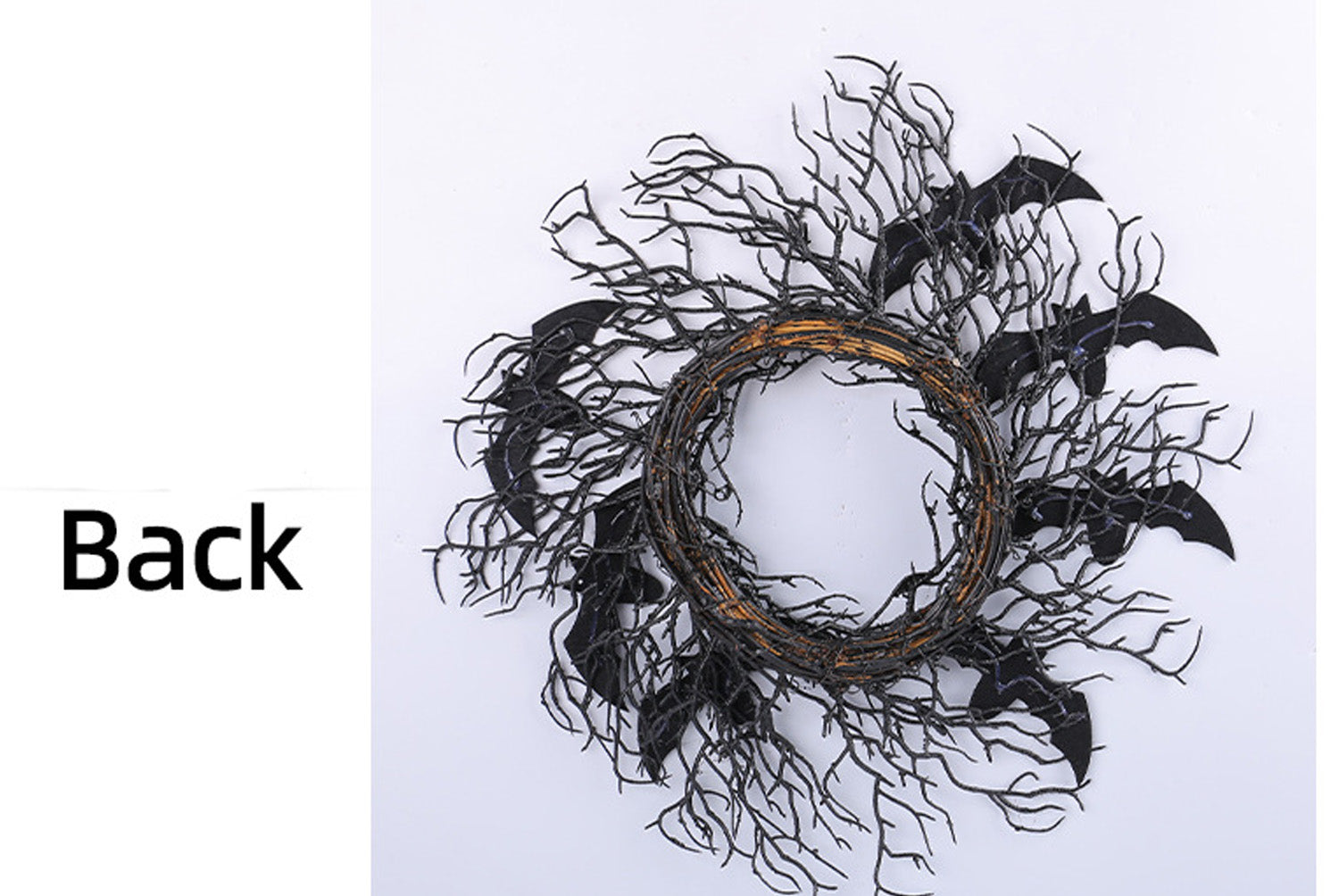 **Halloween Black Dead Branch Bat Vine Wreath | Simulated Decorative Wreath Door Hanging Prop**