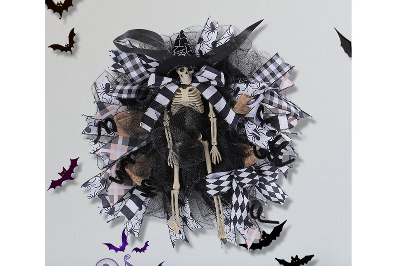 **Halloween Witch Hat Skull Mesh Garland | Scary Ribbon Door Decoration**