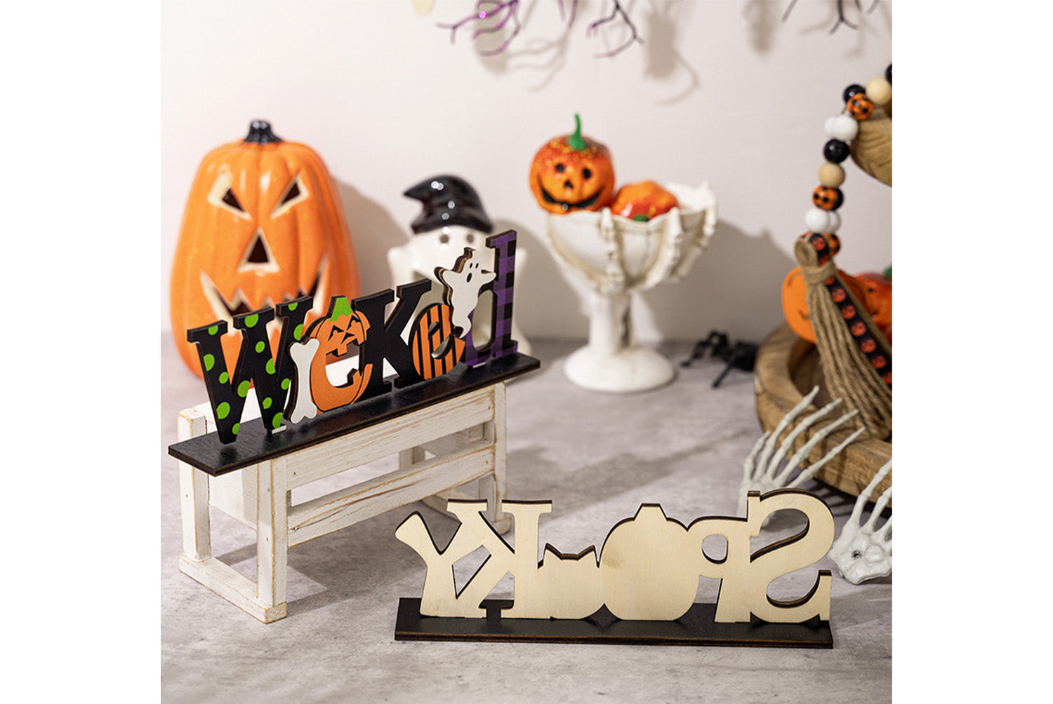 - Product Name: Halloween Wooden Alphabet Decorative Figurine