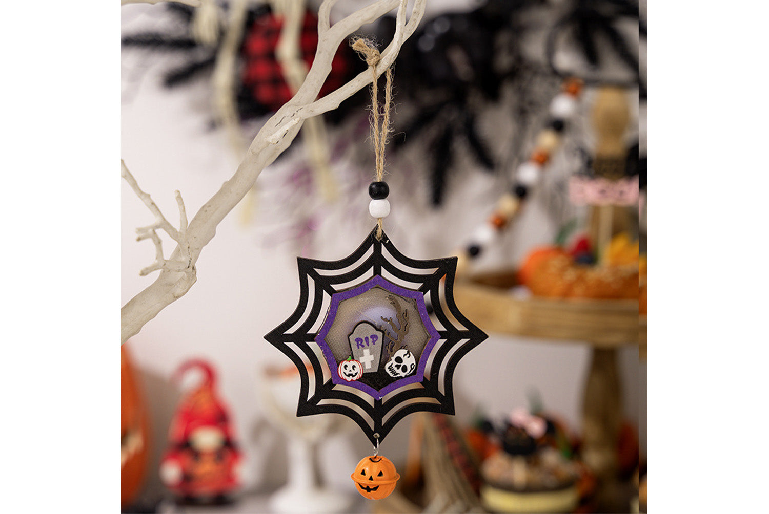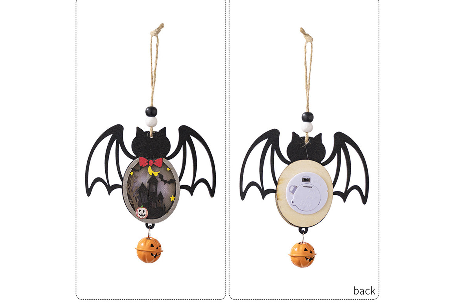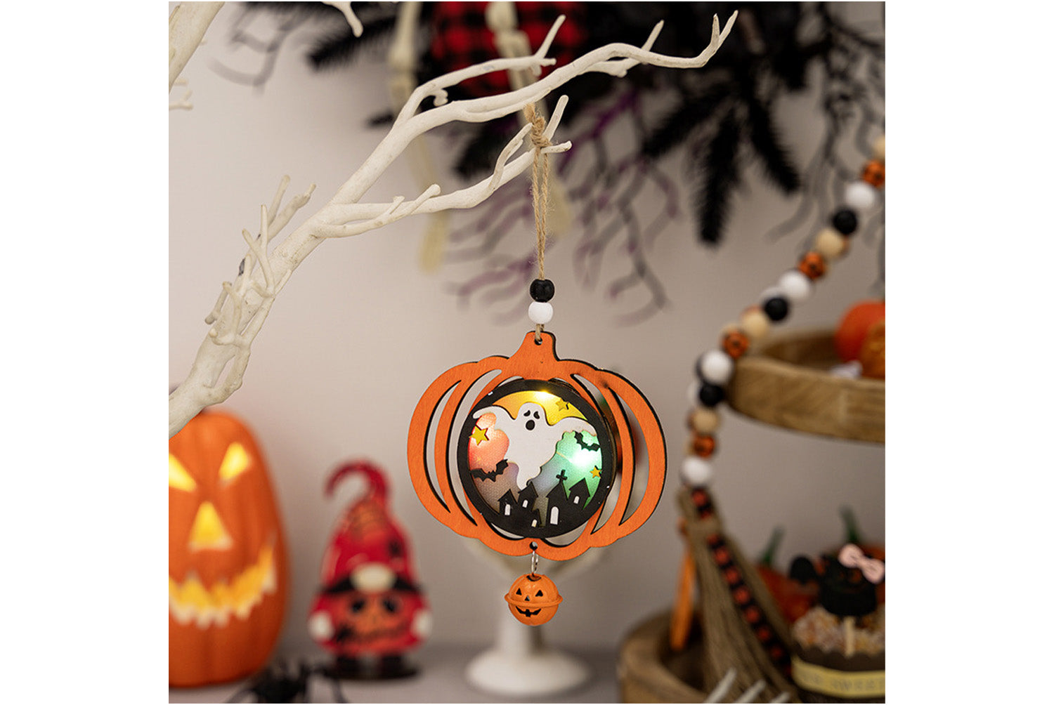 **Halloween Wooden Light-Up Pendant | Pumpkin, Bat, and Spider Horror Decoration**