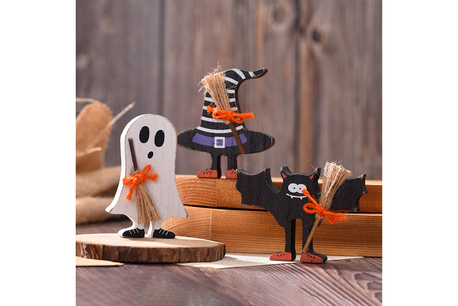 **Halloween Wooden Ornaments | Ghost Bat Tiered Tray Decoration**
