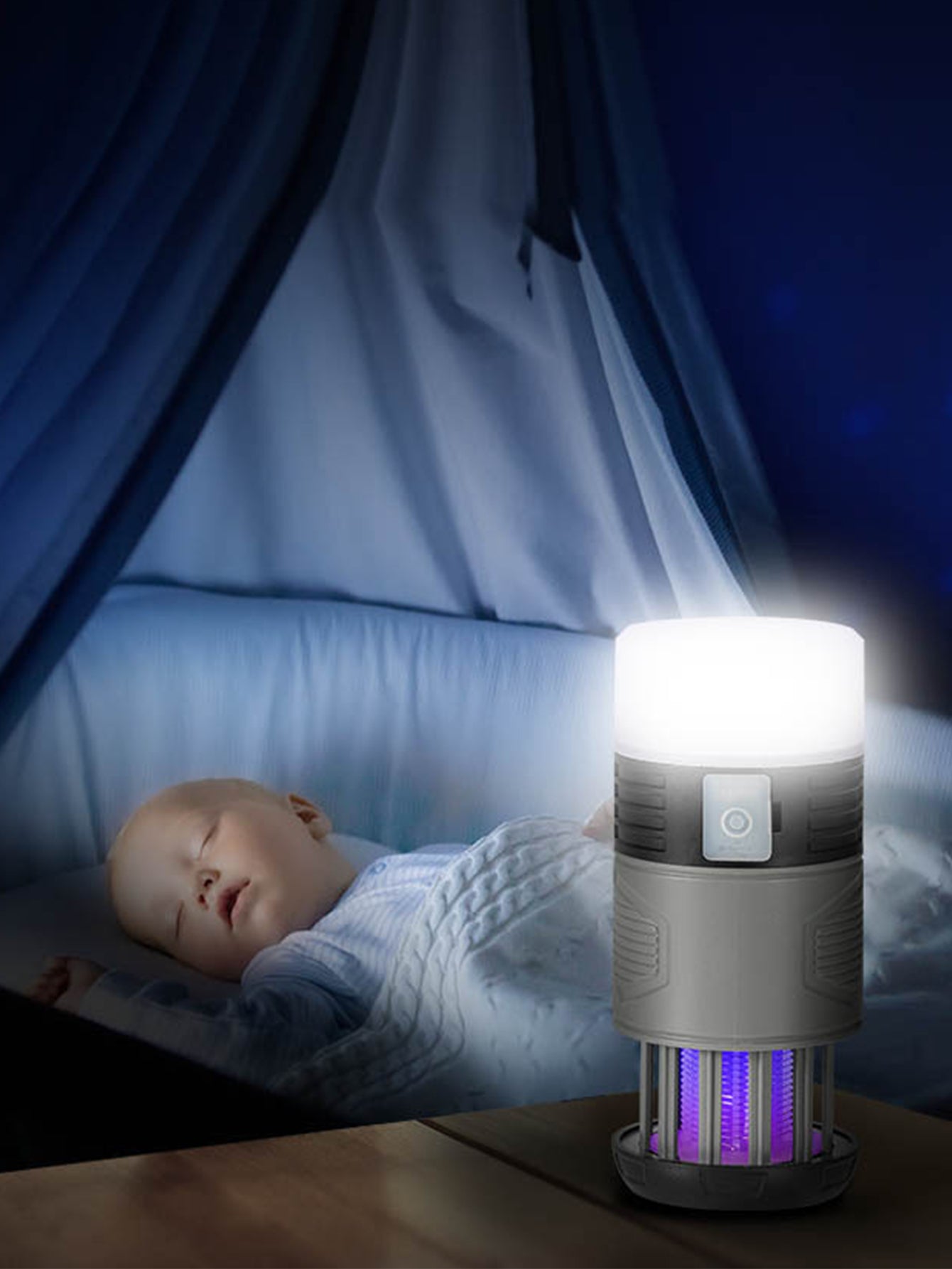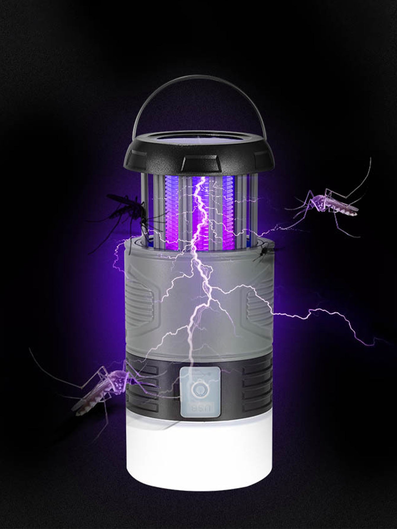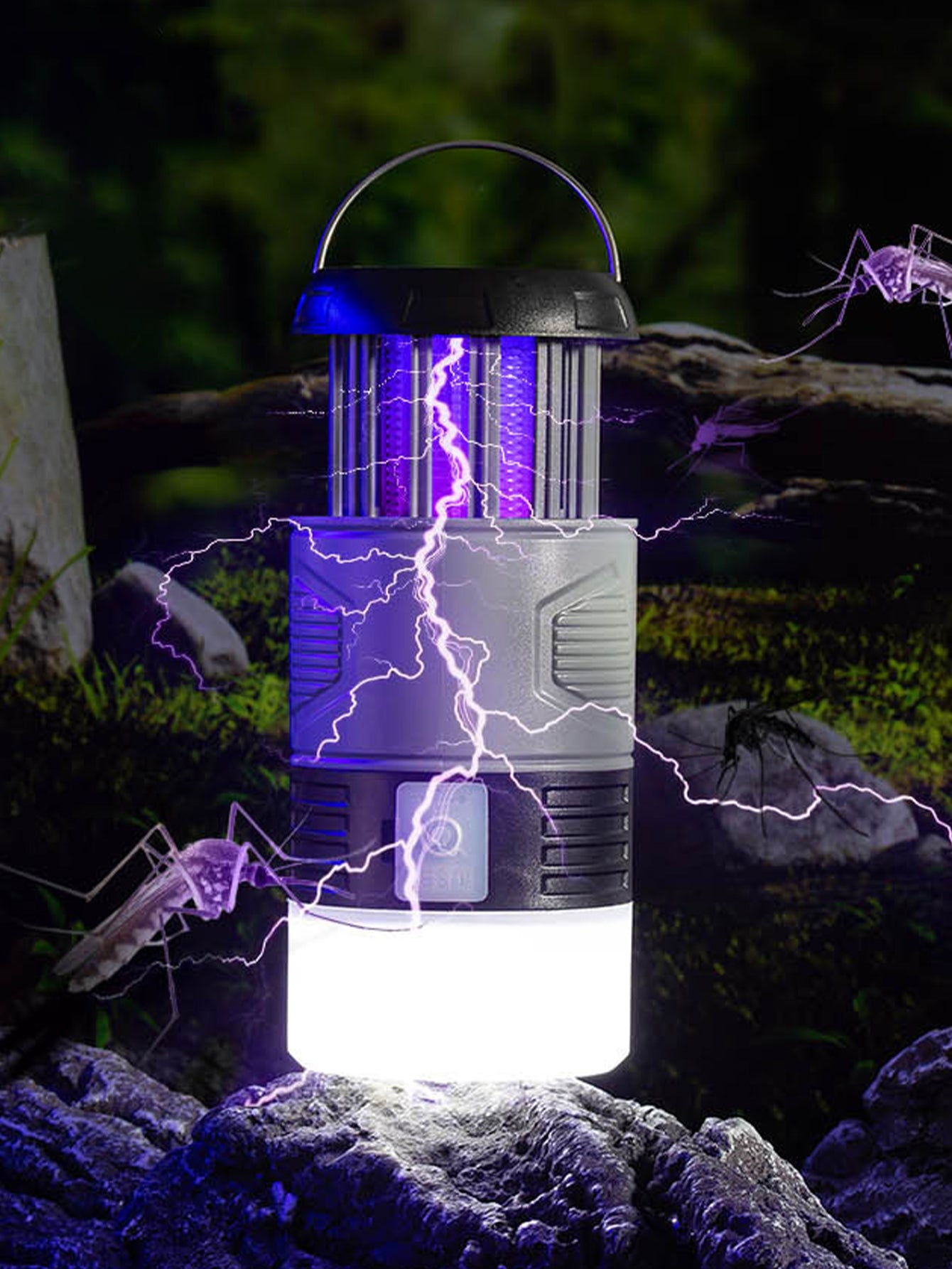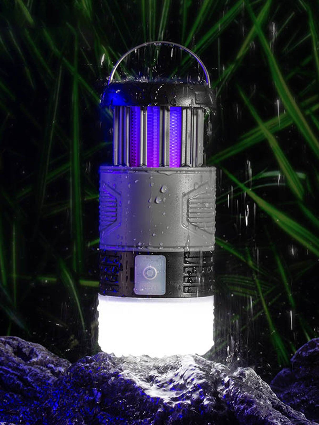 Mosquito Killer Lamp integrates mosquito killing, lighting, and mobile power, and can be used both outdoors and at home. It adopts LED+UV dual light source design, with a lighting brightness of 320LM (floodlight) + 100LM (ultraviolet mosquito luring), a range of 150 meters, and supports three-speed switching of strong light, weak light, and flashing. It can work continuously for 8 hours in mosquito killing mode and 12 hours in lighting mode. It has a built-in 2000mAh large-capacity battery, supports solar charging and Type-C fast charging, and can be fully charged in 4 hours. Press and hold the first gear for 3 seconds to switch to a mobile power supply, and charge your phone at any time. PC+ABS material is light and durable (only 218.6g), with a waterproof design for daily life, suitable for a variety of scenarios.