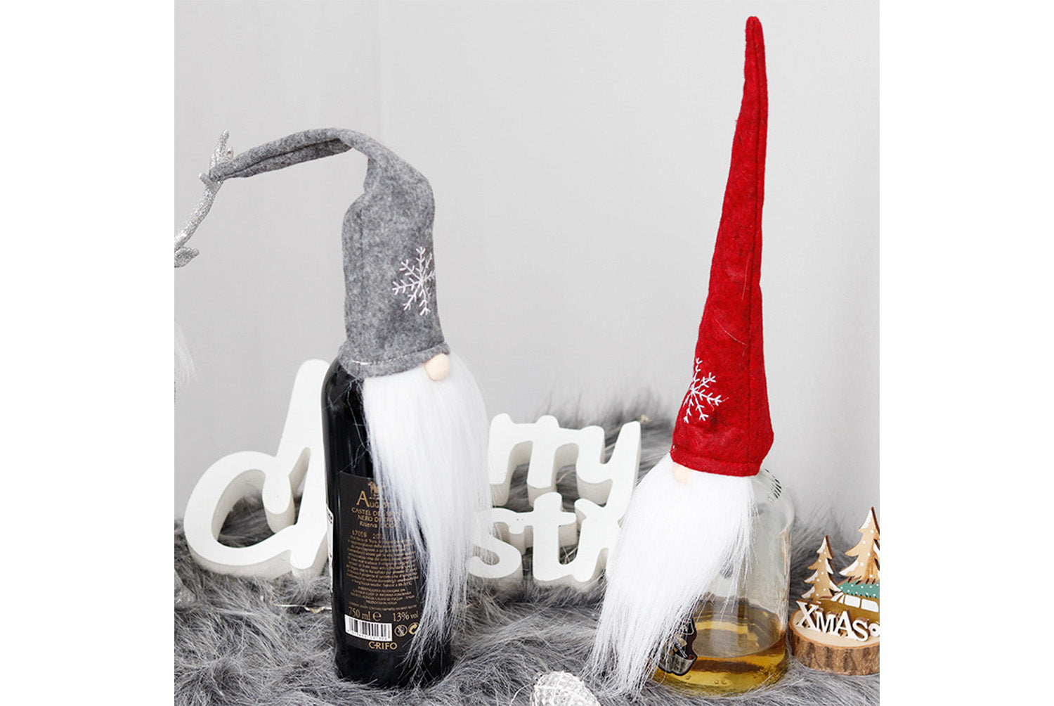 **Nordic Christmas Wine Bottle Cover (Faceless Old Man Snowflake Design)**