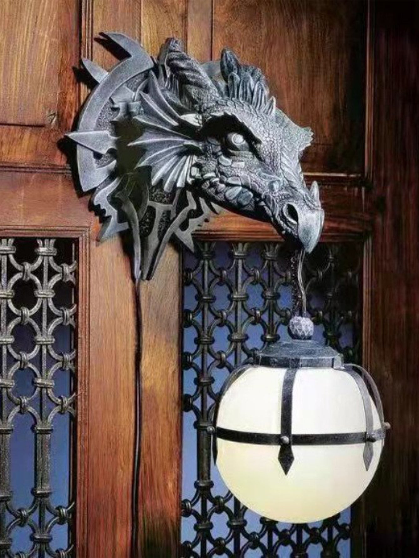 This resin dinosaur head with light ornament is both artistic and practical. It is made of high-quality resin material, with vivid details and restored dinosaur domineering shape. Built-in soft LED light, full of atmosphere after lighting, suitable for placing in the living room, study, garden or entrance, adding unique personality to the space.