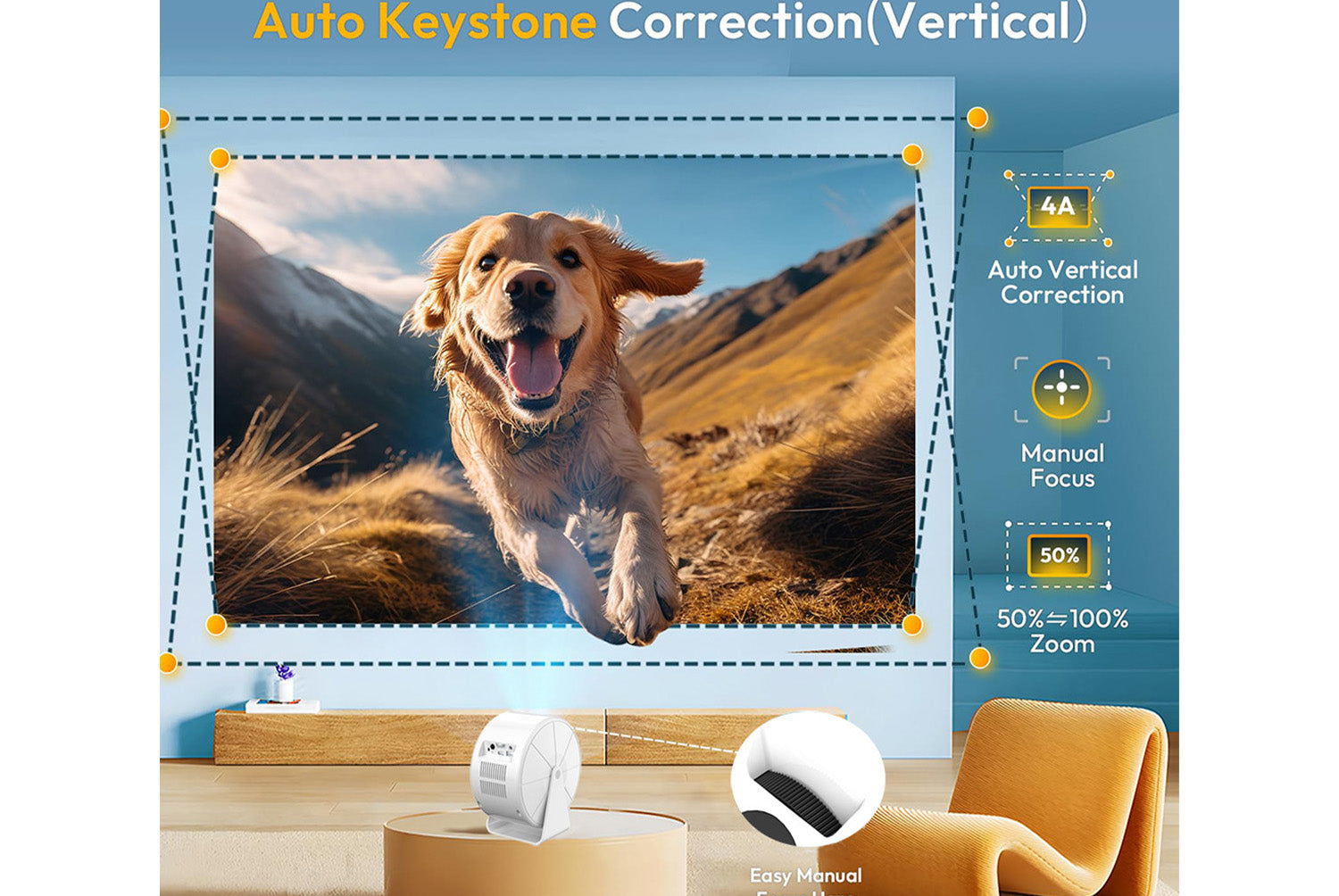 - Four-way keystone correction for flexible placement