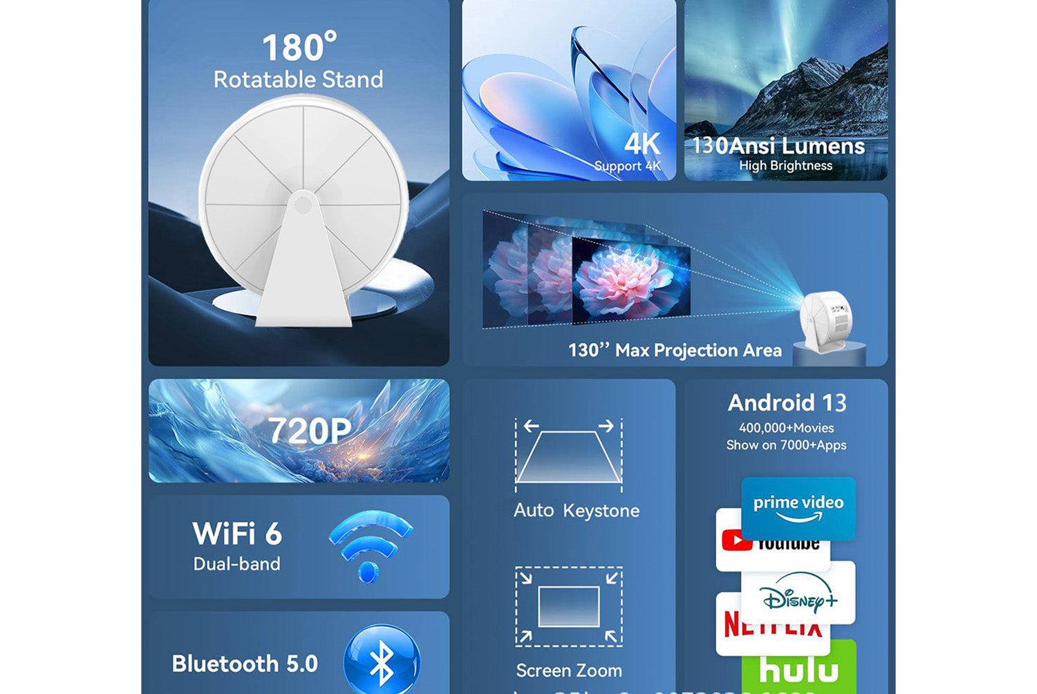 - Multi-device compatibility, supports mobile/computer projection